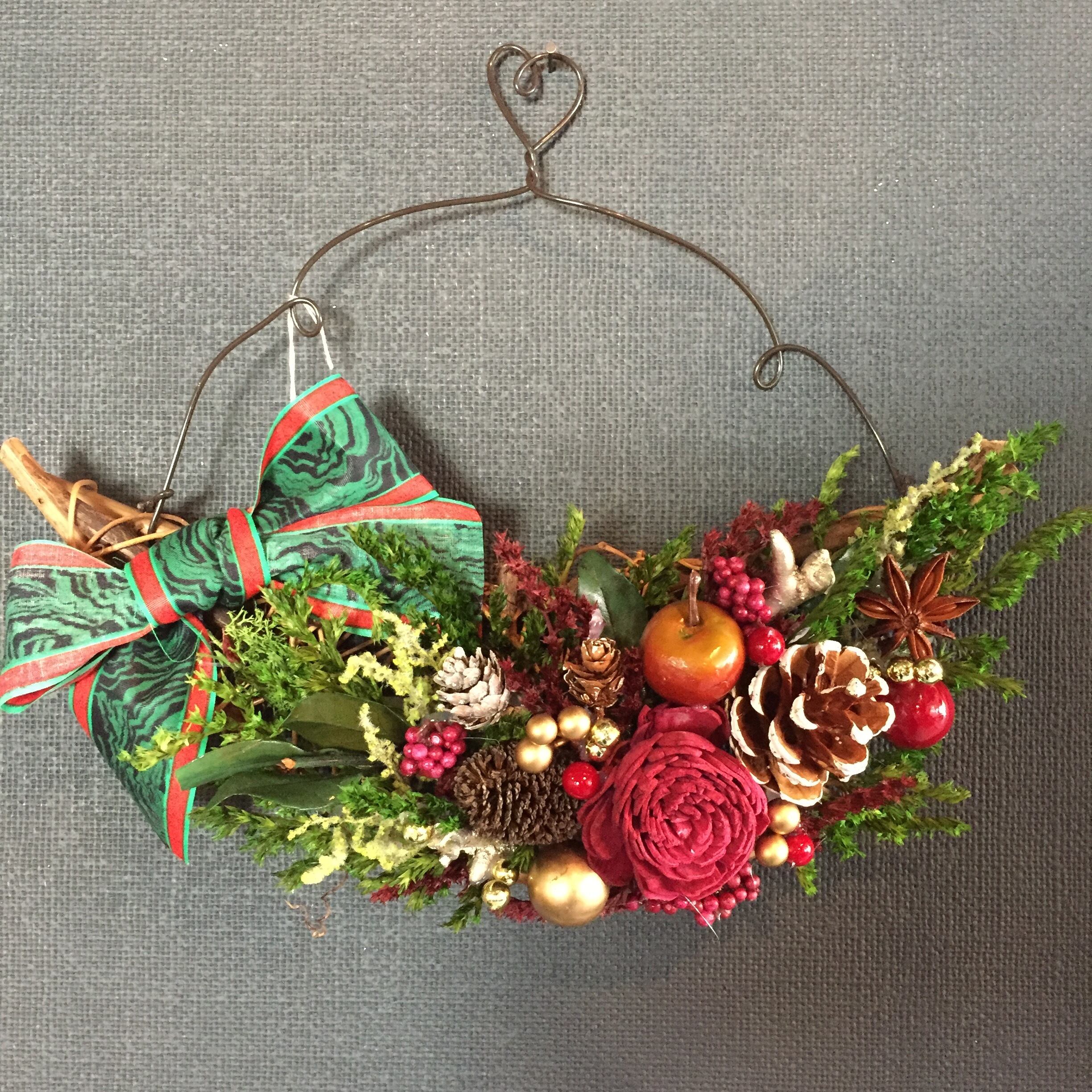クリスマスにピッタリな少し大人っぽい三日月リースです。玄関ドアやリビングによく合います!プレゼントとしてもおススメ!